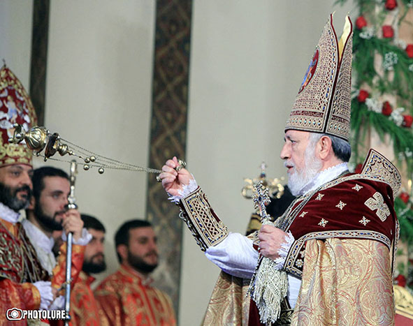 Հայաստանեայց Առաքելական Եկեղեցւոյ ընդհանրական կեդրոնին՝ Մայր Աթոռ Սուրբ Էջմիածնի մէջ Սուրբ Զատկի առթիւ տօնակատարութիւններուն նախագահեց, տաղաւարի մեծահանդէս Ս. Պատարագը մատոյց եւ օրուան պատգամը տուաւ Ամենայն Հայոց Տ.Տ. Գարեգին Բ. Կաթողիկոսը։ Մայր Տաճարի զանգերը առաւօտեան կանուխ ժամերուն ղօղանջեցին ուրախութեամբ, մինչ պատարագիչ Նորին Սրբութիւնը ծանրաշուք թափօրով Միածնաէջ Մայր Տաճար առաջնորդուեցաւ՝ հայրապետական լրիւ հանդերձանքի մէջ։ Տօնակատարութիւններուն ներկայ էին նաեւ Հանրապետութեան նախագահ Սերժ Սարգսեանի կողմէ գլխաւորուած Հայաստանի պետական աւագանին, Երեւանի մօտ հաւատարմագրուած դիւանագէտներ, միջազգային կազմակերպութիւններու ներկայացուցիչներ, կրթութեան եւ մշակոյթի գործիչներ, արուեստագէտներ, մտաւորականներ, ակադեմականներ եւ բազում ուխտաւորներ։ Ներկայ էին նաեւ Հայկական բարեգործական ընդհանուր միութեան Կեդրոնական վարչութեան նախագահ Պերճ Սեդրակեան եւ միութեան 88-րդ համագումարի մասնակիցները։ Սուրբ Էջմիածնի միաբանութեան անդամներն ալ ներկայ էին հայրապետական Սուրբ Պատարագին։ Խորհրդաւոր այս արարողութիւնը Հայաստանի Հանրային հեռուստատեսութեան միջոցաւ սփռուեցաւ ուղիղ եթերով, ուստի համայն աշխարհի հայութիւնը հաղորդ դարձաւ Մայր Աթոռ Սուրբ Էջմիածնի մէջ ստեղծուած տօնական խանդավառութեան։ Հայրապետական Սուրբ Պատարագի ընթացքին Նորին Սրբութեան առընթերակայ էին Տ. Նաթան Արք. Յովհաննիսեան եւ Տ. Բագրատ Եպսկ. Գալստանեան։