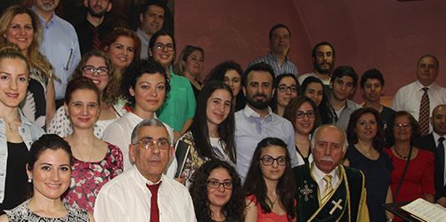 Եկեղեցական արարողութենէն վերջ եկեղեցւոյ յարակից սրահին մէջ սարքուեցաւ սիրոյ սեղան մը։ Տէր Հայրը օրհնեց սեղանը, որու շուրջ համախմբուած էին երգչախումբի անդամները, Տատեան վարժարանի տնօրէնուհի Ալիս Պայրամ, քոյր դպրաց դաս-երգչախումբերու ներկայացուցիչներ, երեսփոխանի թեկնածու Կարապետ Փայլան եւ այլք։ Ատենապետ Արէտ Սուսամի կողմէ գլխաւորուած տնօրէն խորհուրդի անդամները ջերմ մթնոլորտի մը մէջ հիւրընկալեցին բոլոր ներկաները, որոնք համակուած էին տարեդարձի հրճուանքով։ Ողջոյնի խօսքերով հանդէս եկան դպրապետ Արամ Պարոնեան եւ Արէտ Սուսամ։ Արտայայտուեցաւ նաեւ Կարապետ Փայլան։
