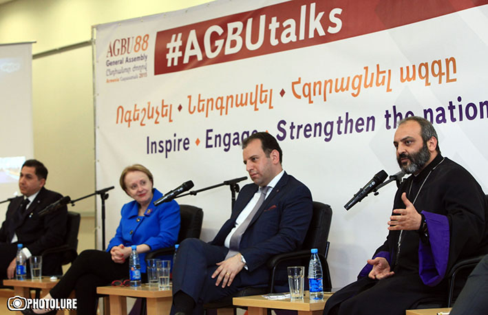 Երէկուան ժողովի միւս ատենախօսներն էին Հայաստանի Հանրապետութեան նախագահի աշխատակազմի ղեկավար Վիգէն Սարգսեան, Մայր Աթոռ Սուրբ Էջմիածնի Եկեղեցական հայեցակարգային հարցերու գրասենեակի տնօրէն Տ. Բագրատ Եպսկ. Գալստանեան, Հայաստանի Ամերիկեան համալսարանի շարունակական կրթութեան ծրագրերու տնօրէնուհի Արփի Պալեան եւ ՄԱԿ-ի Մարդու իրաւանց յանձնակատարի Կեդրոնական Ասիոյ շրջանային մասնաճիւղի ղեկավար Արմէն Յարութիւնեան։
