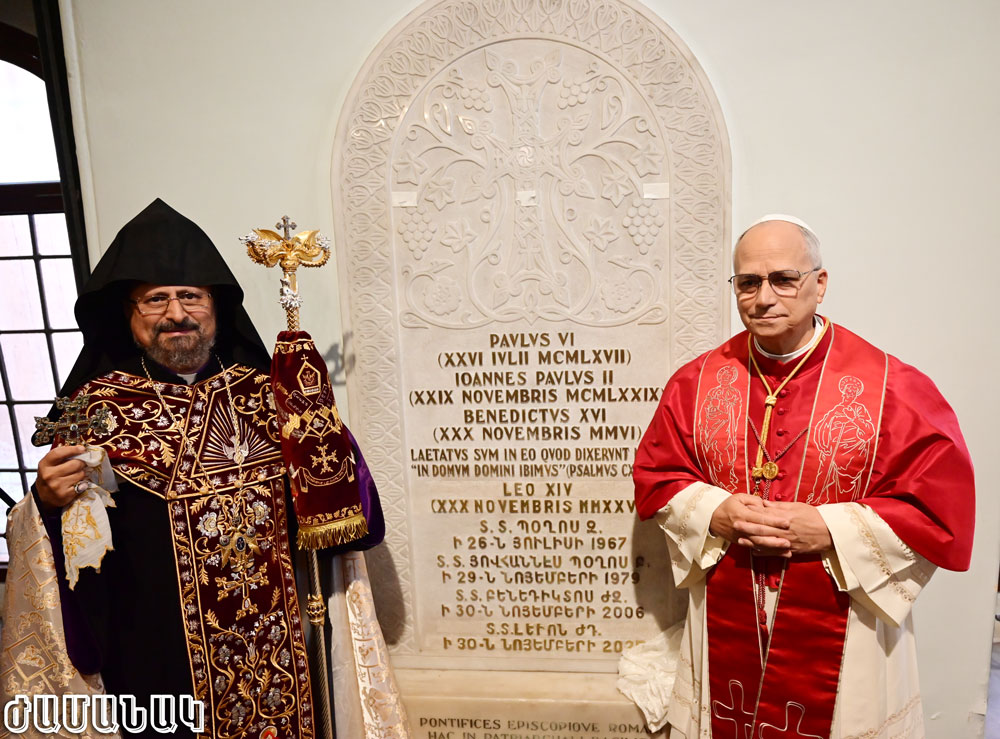 Ամեն. Ս. Պատրիարք Հայրը, որ Սրբազան Քահանայապետի կեցութեան օրերուն միջեկեղեցական ամբողջ ծրագրին ներկայացուցած էր Տ.Տ. Գարեգին Բ. Ամենայն Հայոց Վեհափառ Հայրապետը, երէկ, այս անգամ Աթոռանիստ Մայր եկեղեցւոյ մէջ ընդունեց Սրբազան Պապը եւ իր ողջոյնի խօսքին մէջ ըսաւ. «Ձեր ներկայութիւնը մեր մէջ այսօր ո՛չ միայն պատիւ մըն է, այլեւ օրհնութիւն՝ մեր համայնքին, Թուրքիոյ մէջ գործող եկեղեցիներուն եւ բոլոր անոնց, որոնք քրիստոնեաներու միութեան համար ջանք կը թափեն։ Այս պահը, Ձերդ Սրբութիւն, պիտի մնայ մեր ժողովուրդի սրտերուն մէջ արձանագրուած»։