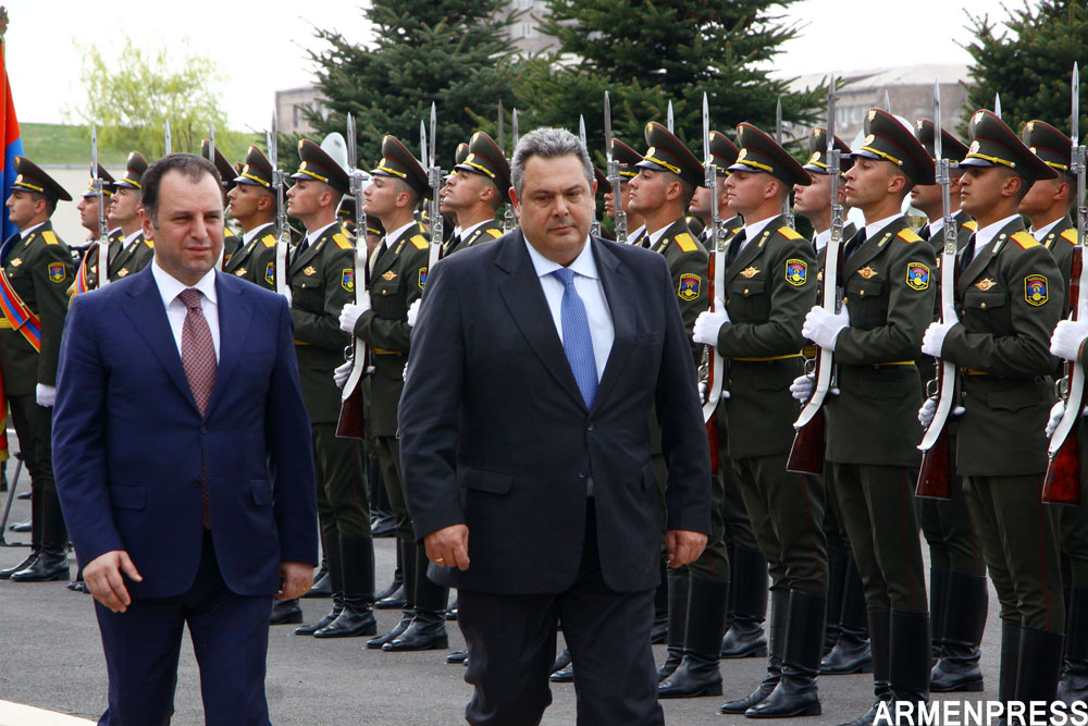 Յունաստանի Ազգային պաշտպանութեան նախարար Փանոս Քամենոս շփումներ ունեցաւ Երեւանի մէջ՝ Հայաստանի Պաշտպանութեան նախարար Վիգէն Սարգսեանի հրաւէրին ընդառաջ։ Հիւր նախարարը Հայաստանի Պաշտպանութեան նախարարութեան կեդրոնական վարչական համալիրէն ներս դիմաւորուեցաւ պաշտօնական արարողութեամբ։